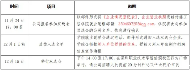 (2)12月1日前学院将会对参加双选会的公司名单信息进行确认。